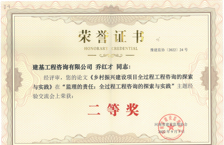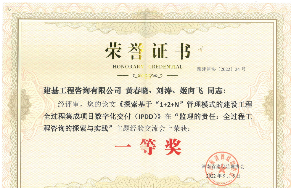 会议对在“监理的责任:全过程工程咨询的探索和实践”主题经验交流会论文征集活动中获得一、二、三等奖的论文进行了表彰。由公司总裁黄总、副总兼总工程师刘涛、bim中心部长姬向飞撰写的论文《探索基于“1 2 n”管理模式的建设工程全过程集成项目数字化交付(ipdd)》荣获一等奖。公司员工乔红才撰写的论文《乡村振兴建设项目全过程工程咨询的探索与实践》荣获二等奖。